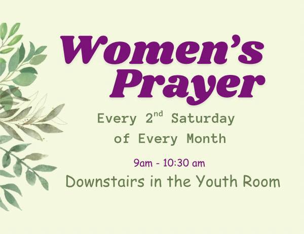 Every 2nd Saturday of the month, the women will gather at 9 am – 10:30am downstairs at YCF for a powerful time of prayer and fellowship! Join them for a great time of fellowship!