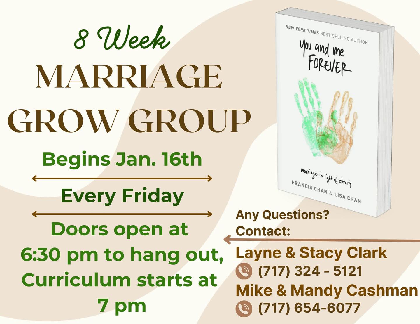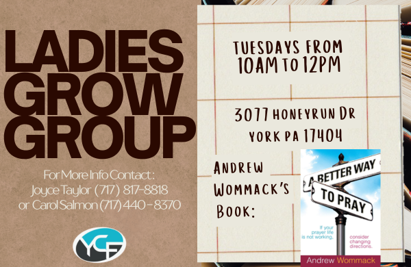 To join a current Grow Group or be placed in a newly forming one, please contact the office at 717-792-5354. We will be launching many new groups this year and want to diversify them as much as possible. New people like you are the key!